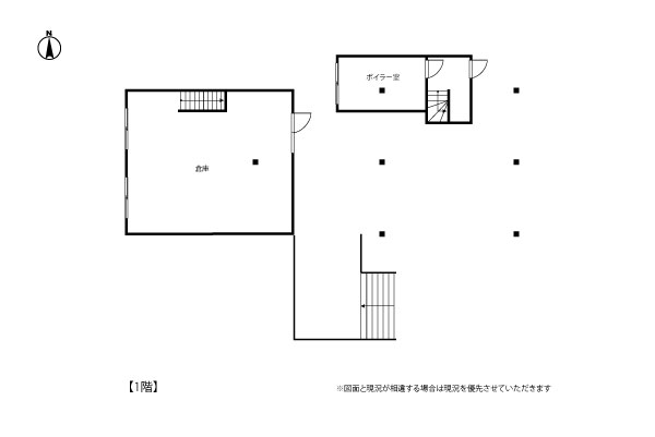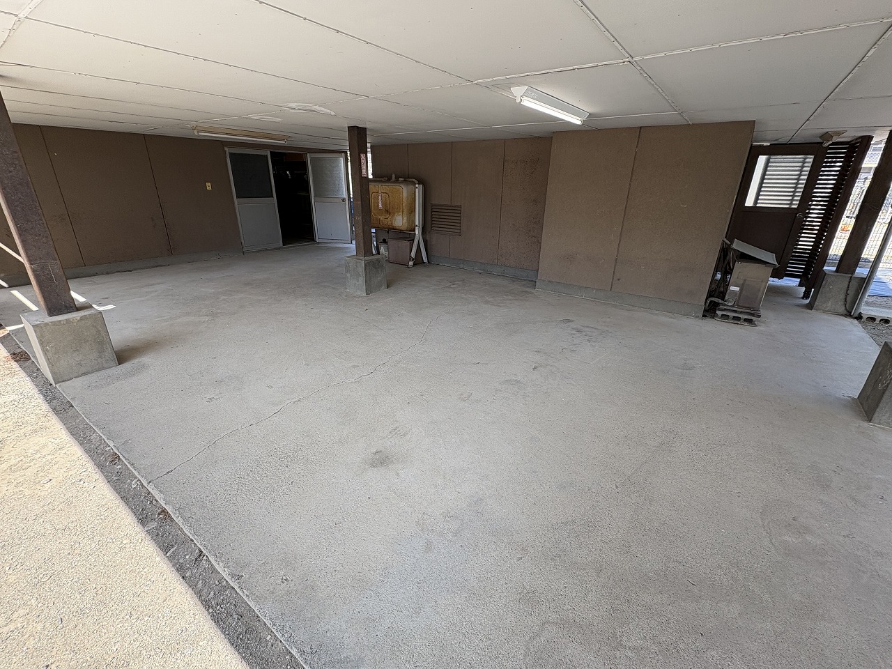 1階は鉄骨造の倉庫スペース等、2階は木造の住居スペースとなっております。